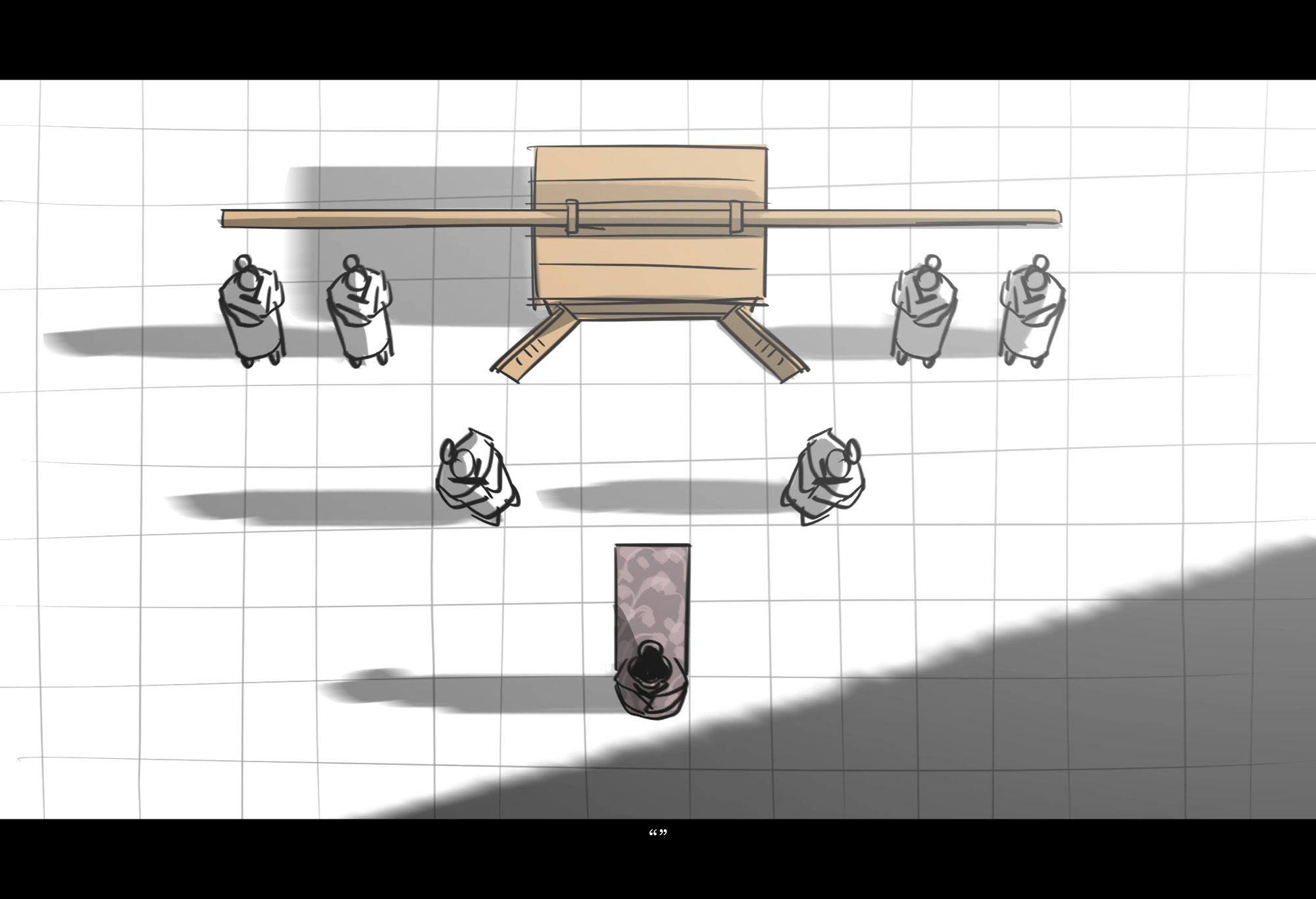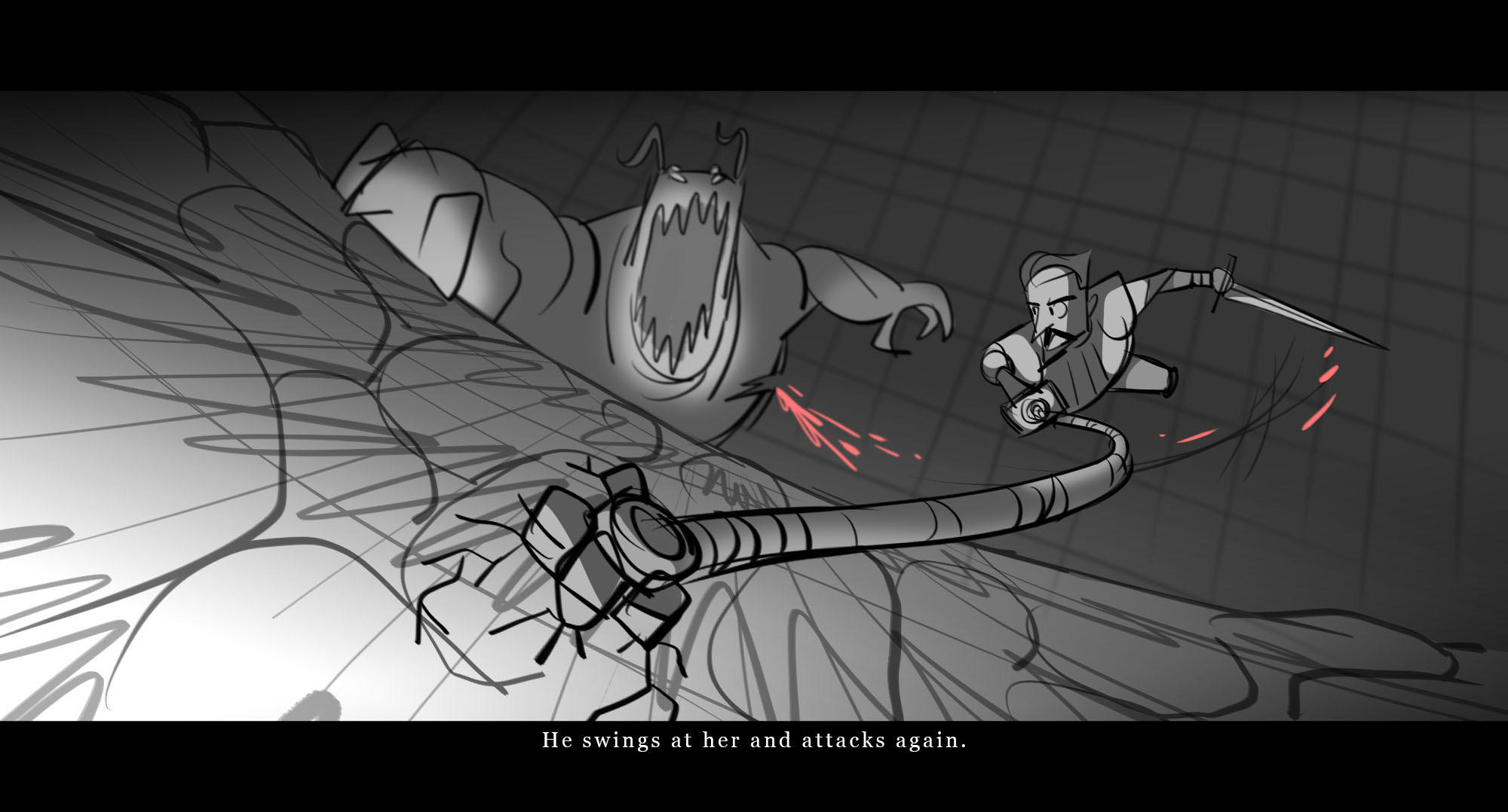 In this course we will discuss scene blocking, subtext, intentionality, editing, tone, and time management. Homework will include film analysis, storyboards from personal and/or existing scripts, and a sketchbook for exercises, thumbnails, and gesture drawing. The final assignment will be one fully timed sequence of the student’s choice complete with temp sound and scratch dialogue. This course is designed to challenge our process as storytellers: how we think, study, and apply that experience to the stories we tell.